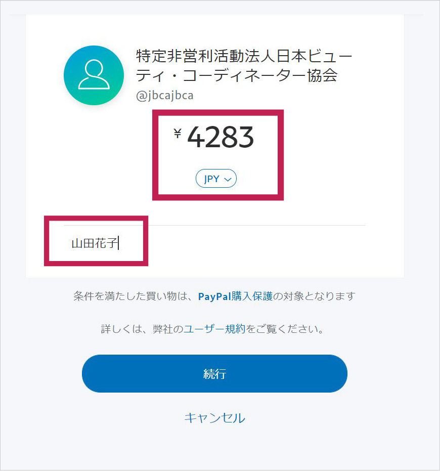 STEP02. 申込完了画面の入金金額を確認いただき、PayPalよりお振込を行ってください。